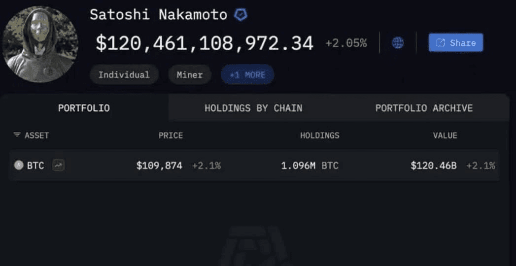 Satoshi Nakamoto, il creatore di Bitcoin, non ha toccato la sua stima di 750.000-1.100.000 BTC (valore di miliardi) in più di 15 anni.
