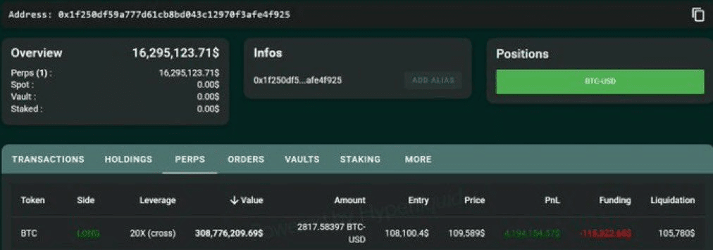 Una balena di Bitcoin (indirizzo: 0x1f25bdf59a777d61cb8bd843c12978f3afe4f925) ha aperto una posizione LONG in BTC-USD con: