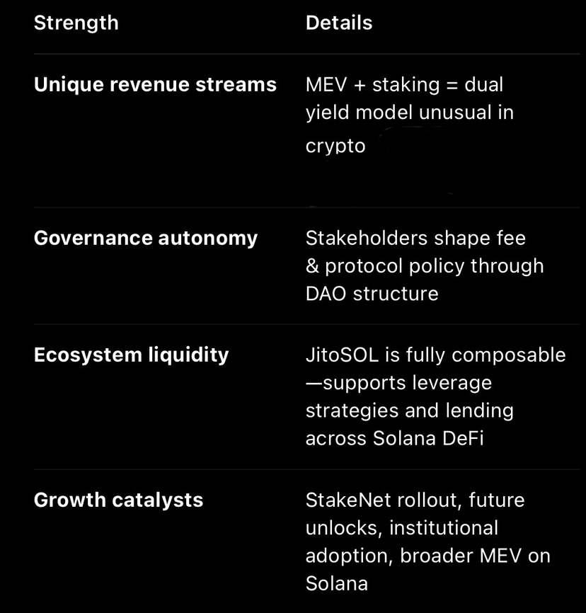 $JTO si distingue per la fusione di staking liquido, cattura MEV e governance DAO in un protocollo coeso con un reale accumulo di valore. Man mano che lo staking su Solana continua a maturare e MEV diventa mainstream, l'approccio di Jito potrebbe guadagnare slancio.