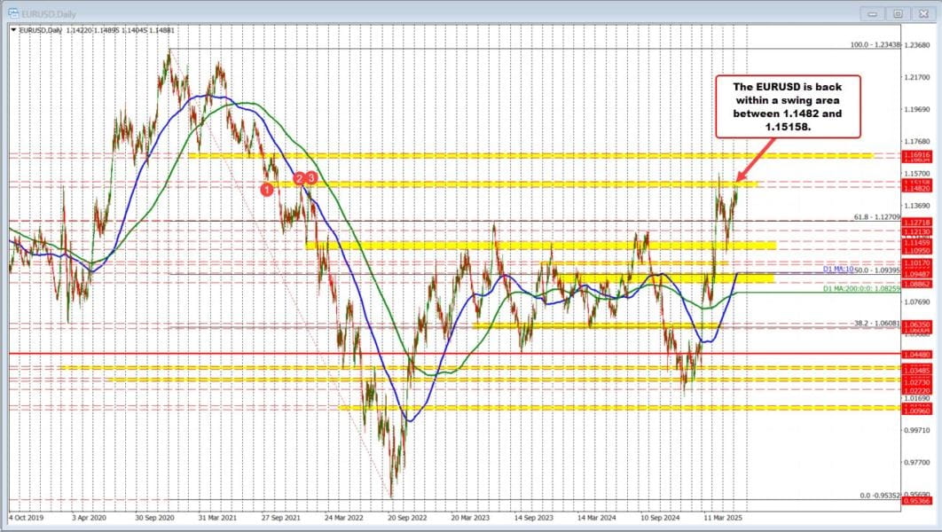 L'euro sta salendo, con EUR/USD che tocca 1.1489, testando una zona di resistenza critica (1.1482-1.1516) dal 2021-2022.
