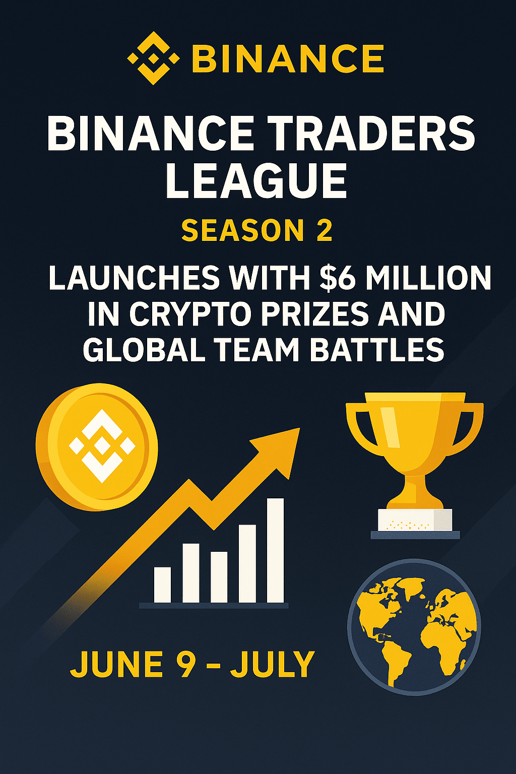 Binance ha appena lanciato la Stagione 2 della sua competizione di trading di punta, la Traders League, che si svolgerà dal 9 giugno al 6 luglio 2025—con un enorme montepremi di $6 milioni suddiviso in più categorie.