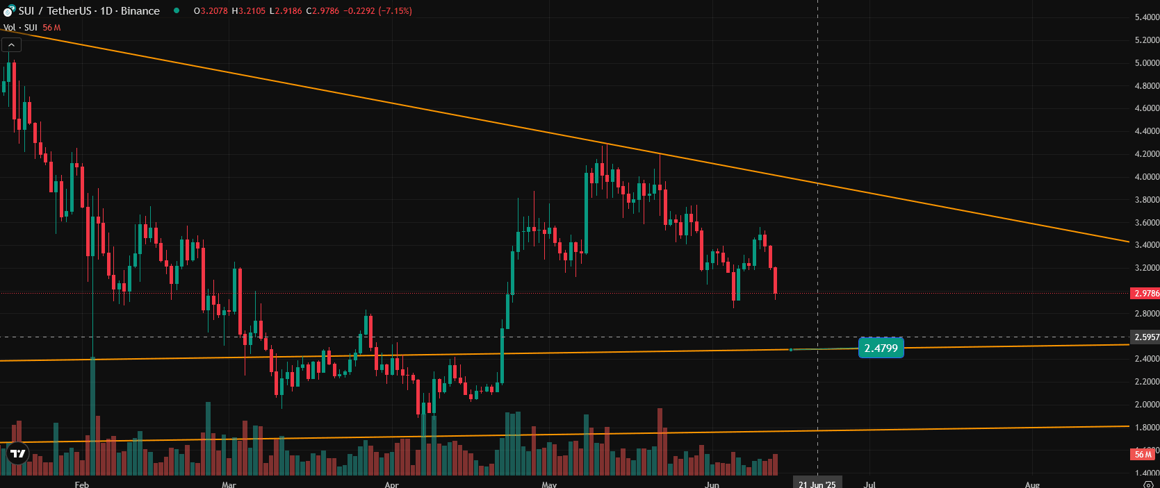 Nella situazione attuale di SUI, dovrebbe esserci una tendenza al ribasso, e il prezzo di supporto più vicino è di 2.5 dollari. A questo nodo di 2.5 dollari, potrebbe ancora invertirsi, quindi a 2.5 dollari dobbiamo prestare particolare attenzione.