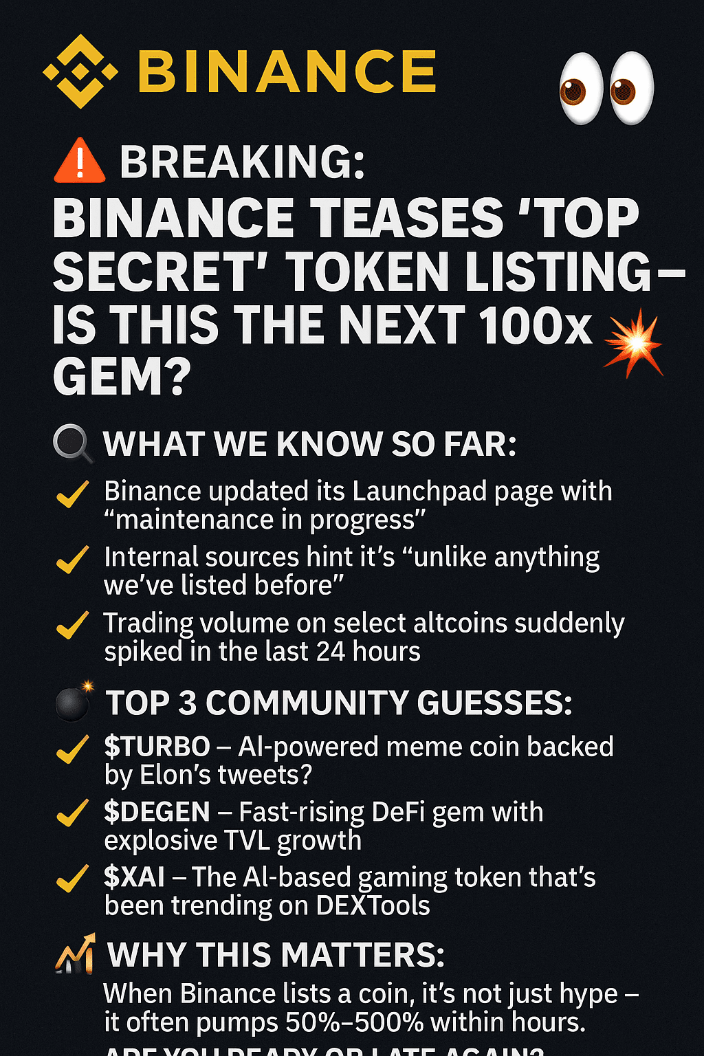 🚨 IN ARRIVO: Binance anticipa *“Top Secret”* listaggio di token — È questo il prossimo gioiello da 100x? 👀💥
