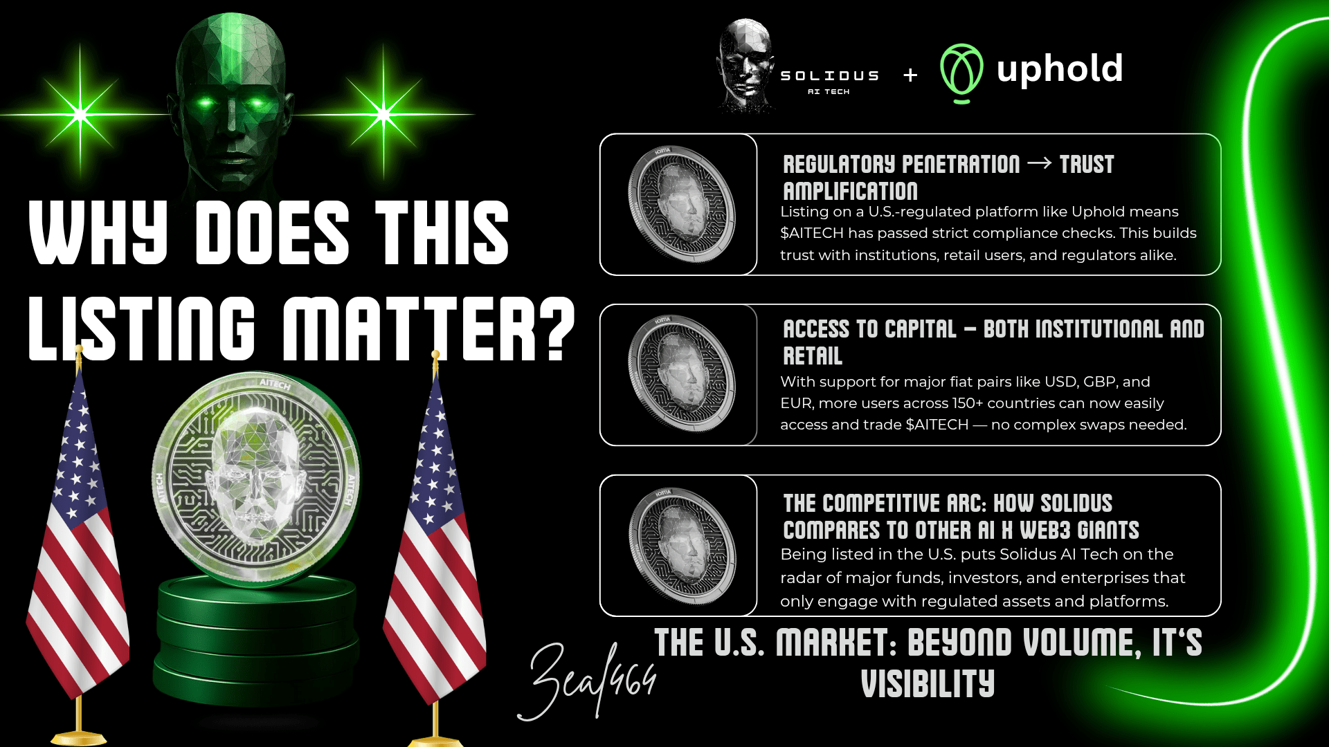 Il 12 giugno, Solidus @AITECH ha raggiunto una pietra miliare che cambia le regole del gioco: la quotazione del suo token nativo, $AITECH , su Uphold — una delle più grandi piattaforme di trading digitale regolate dagli Stati Uniti, fidata da oltre 10 milioni di utenti, con oltre $40 miliardi di volume, e una presenza in oltre 150 paesi.