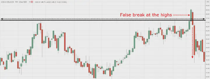 3) Aspettare un falso breakout, il prezzo si inverte improvvisamente e chiude al di sotto del livello di resistenza.