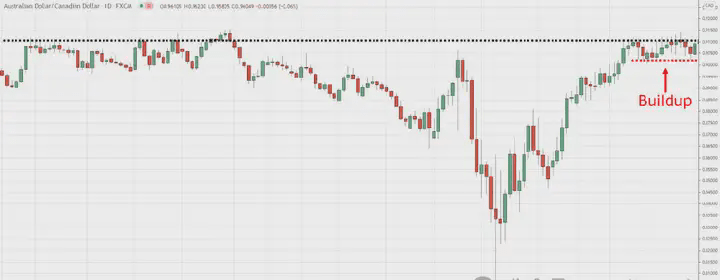 Nel frattempo, i trader rialzisti continuano a entrare nel mercato, sperando di vedere la tendenza continuare. In questo contesto, quando senti sia pressione di acquisto che di vendita, il mercato (noto anche come mercato laterale) raggiungerà uno stato di equilibrio. Tuttavia, solo perché il mercato è in fase di accumulo, non significa che romperà e salirà, potrebbe anche continuare a scendere.