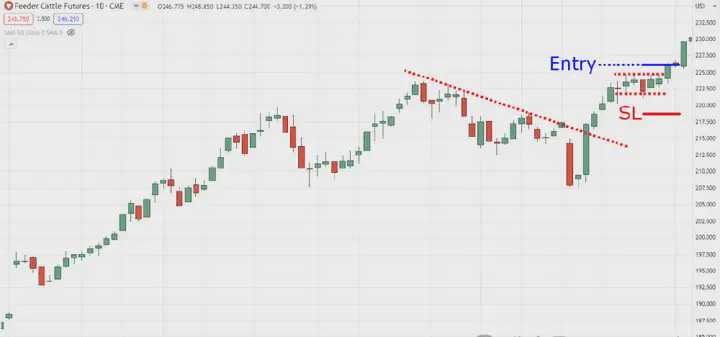 (3) La rottura della struttura (attraverso la rottura della linea di tendenza in un modello a bandiera) offre un forte punto d'ingresso per il trading delle inversioni di tendenza.