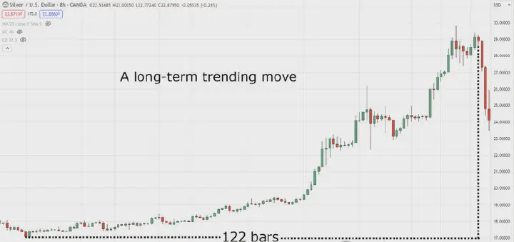Se, rispetto ai modelli di inversione di tendenza, la tendenza presenta meno barre, come mostrato nella figura seguente.