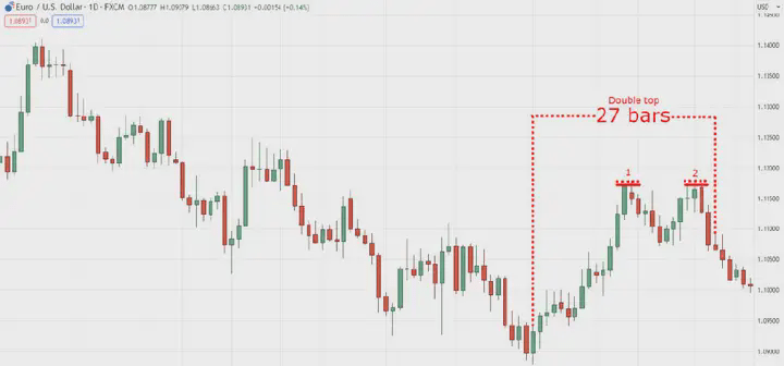 Il rapporto tra tendenza e modelli è il tuo prossimo indizio chiave in questa esplorazione commerciale piena di sfide. Devi calcolare il numero di barre di prezzo in movimento della tendenza e il numero di barre di prezzo corrispondenti ai modelli di inversione di tendenza, come osservato nella figura seguente.