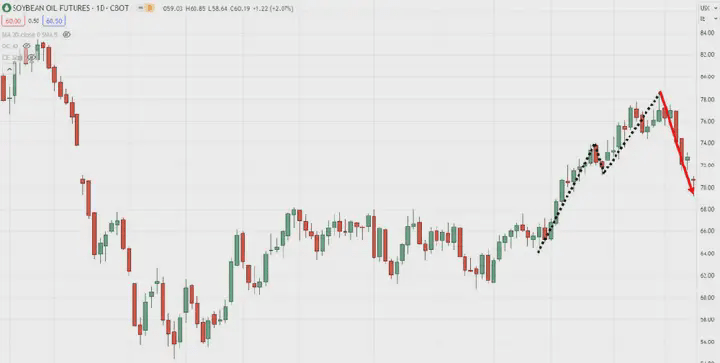 La specifica natura dei modelli di inversione di tendenza può essere compresa in questo modo: immagina di essere a una festa sociale, e la musica cambia bruscamente da un melodioso jazz a un ritmo vivace di salsa. Il meccanismo d'azione dei modelli di inversione di tendenza è simile; essi svolgono un ruolo nel mercato simile a quello di un DJ. Fondamentalmente, questi modelli preannunciano che la tendenza del mercato sta per cambiare, come mostrato nella figura seguente.