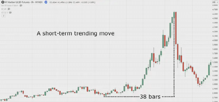 Alcuni trend hanno una durata breve, mantenendosi solo per la lunghezza di alcune barre di prezzo, come mostrato nella figura seguente.