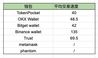 1. TokenPocket ha la velocità media di transazione più veloce (40), con prestazioni superiori rispetto ai portafogli principali del mercato, mostrando un certo vantaggio competitivo in termini di esperienza d'uso reale;