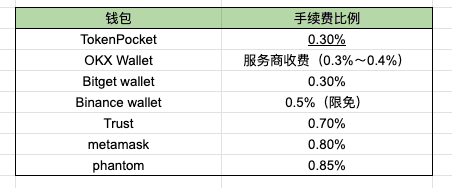 Nelle operazioni cross-chain, le commissioni sono sempre uno dei fattori più importanti per gli utenti. Anche se le commissioni per i trasferimenti cross-chain possono sembrare minime, in caso di operazioni frequenti o fondi di grande valore, i costi accumulati non possono essere trascurati. Abbiamo raccolto le percentuali di commissione attualmente addebitate dai portafogli principali durante l'esecuzione di operazioni cross-chain, come segue: