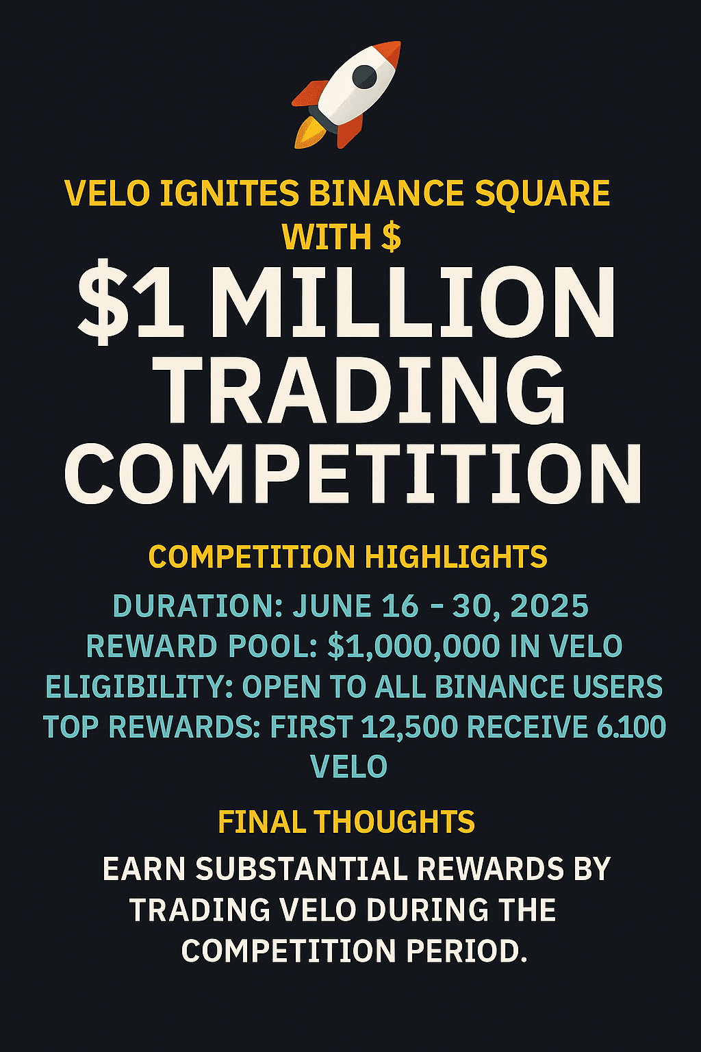 La comunità di Binance è in fermento mentre VELO lancia una delle competizioni di trading più aggressive del mese, offrendo un incredibile premio di 1 milione di dollari per i trader attivi. Questa mossa non solo consolida l'ingresso di VELO nel mainstream, ma rafforza anche la sua posizione come uno dei token più discussi su Binance Square oggi.