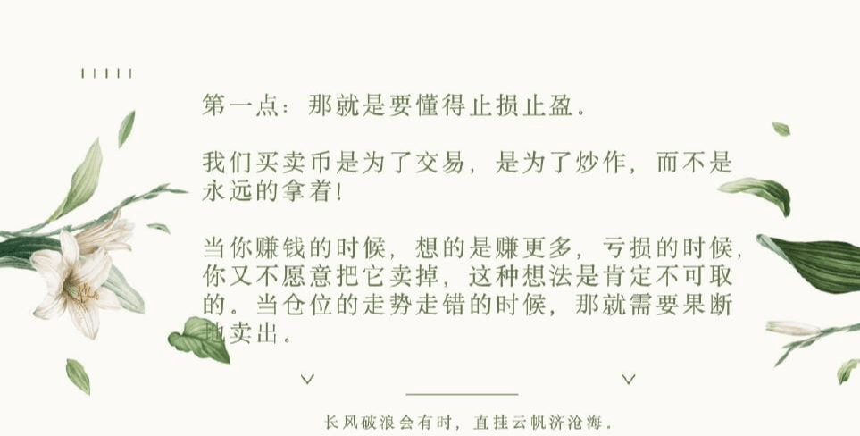 Stop-loss: seguire rigorosamente i punti di stop-loss impostati; quando il prezzo scende del 10% (corrispondente a un rapporto di profitto/perdita di 1:3), è necessario fermare le perdite. A livello giornaliero o settimanale, se il prezzo scende effettivamente al di sotto dei livelli di supporto chiave, come la linea di tendenza ascendente, anche se non si raggiunge il rapporto di stop-loss, è necessario fermare le perdite per evitare maggiori perdite.