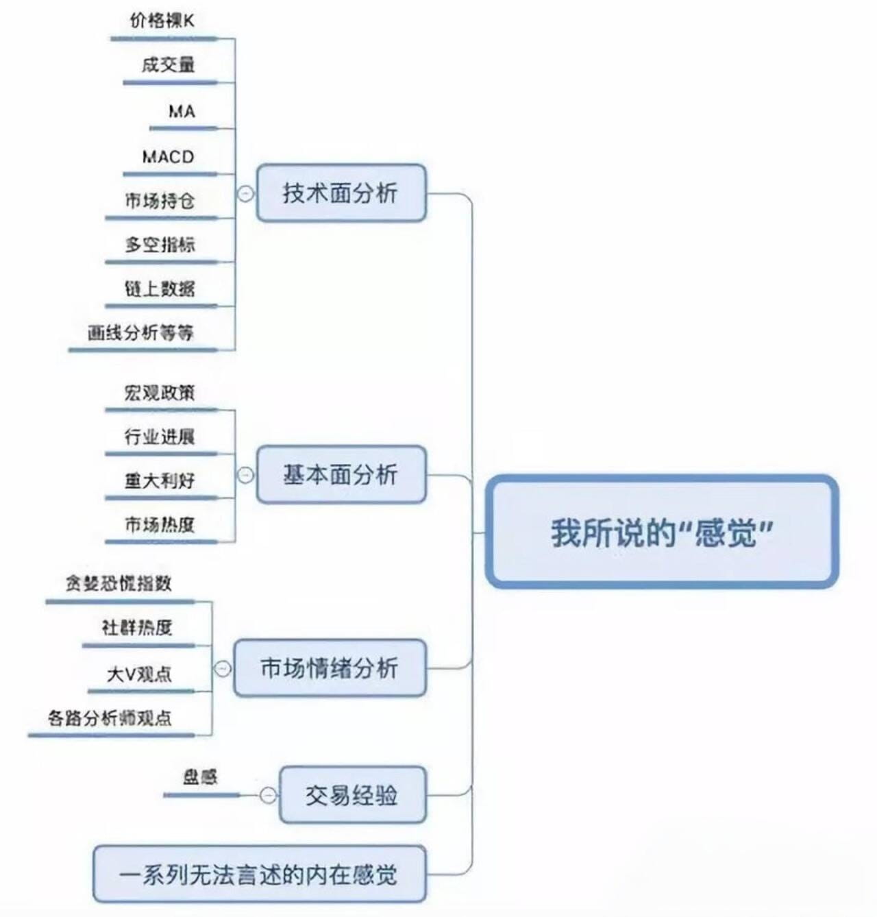 Questo 'sentimento' non è quello che pensi. Il 'sentimento' di cui parlo si riferisce a una sintesi di una serie di fattori paralleli elaborati attraverso il pensiero, il risultato finale di molteplici fattori. Poiché ci sono molti fattori, chiamo il risultato decisionale 'sentimento', piuttosto che la semplice emozione di pensare che il prezzo aumenterà o diminuirà.