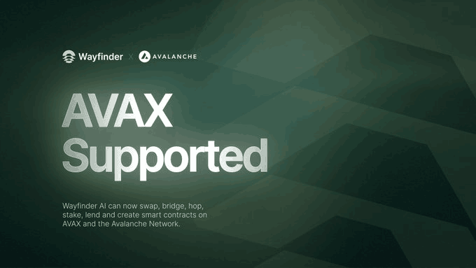 La recente collaborazione con EnsoBuild ha ulteriormente ampliato i confini delle capacità — tramite moduli DeFi preconfezionati, gli agenti possono ora combinare rapidamente scambi cross-chain, staking e altre operazioni. È stato annunciato che Avalanche @avax e il suo token nativo $AVAX sono stati completamente integrati con Wayfinder AI. Ciò significa che il tuo agente Wayfinder AI, compresi Midas (trading) e Vulcan (contratti), così come qualsiasi futuro agente, può scambiare, collegare, saltare, fare staking, prestare e creare contratti intelligenti sulla rete Avalanche. Attraverso Avalanche, superiamo ulteriormente i confini delle azioni sulla catena! Ad esempio, l'utente deve solo inserire "Collega AVAX a Ethereum e depositalo nel protocollo di prestito", e il sistema attiverà il ponte cross-chain tra Avalanche ed Ethereum, connettendo i dati sui tassi di interesse delle piattaforme come Compound, senza necessità di intervento manuale.