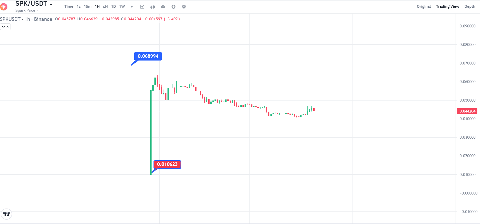 Il token SPK ha affrontato una volatilità significativa dopo il suo debutto del 17 giugno. Dopo aver raggiunto inizialmente un massimo storico di $0,068994, SPK ha subito una drammatica correzione. Al momento dei dati più recenti, SPK viene scambiato a $0,05 con un volume di trading di 24 ore di $83.857.609. Questo rappresenta un calo del prezzo dell'1,35% nelle ultime 24 ore, anche se ancora del 10,63% superiore al suo minimo storico di $0,04.