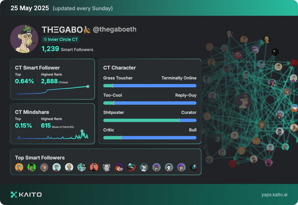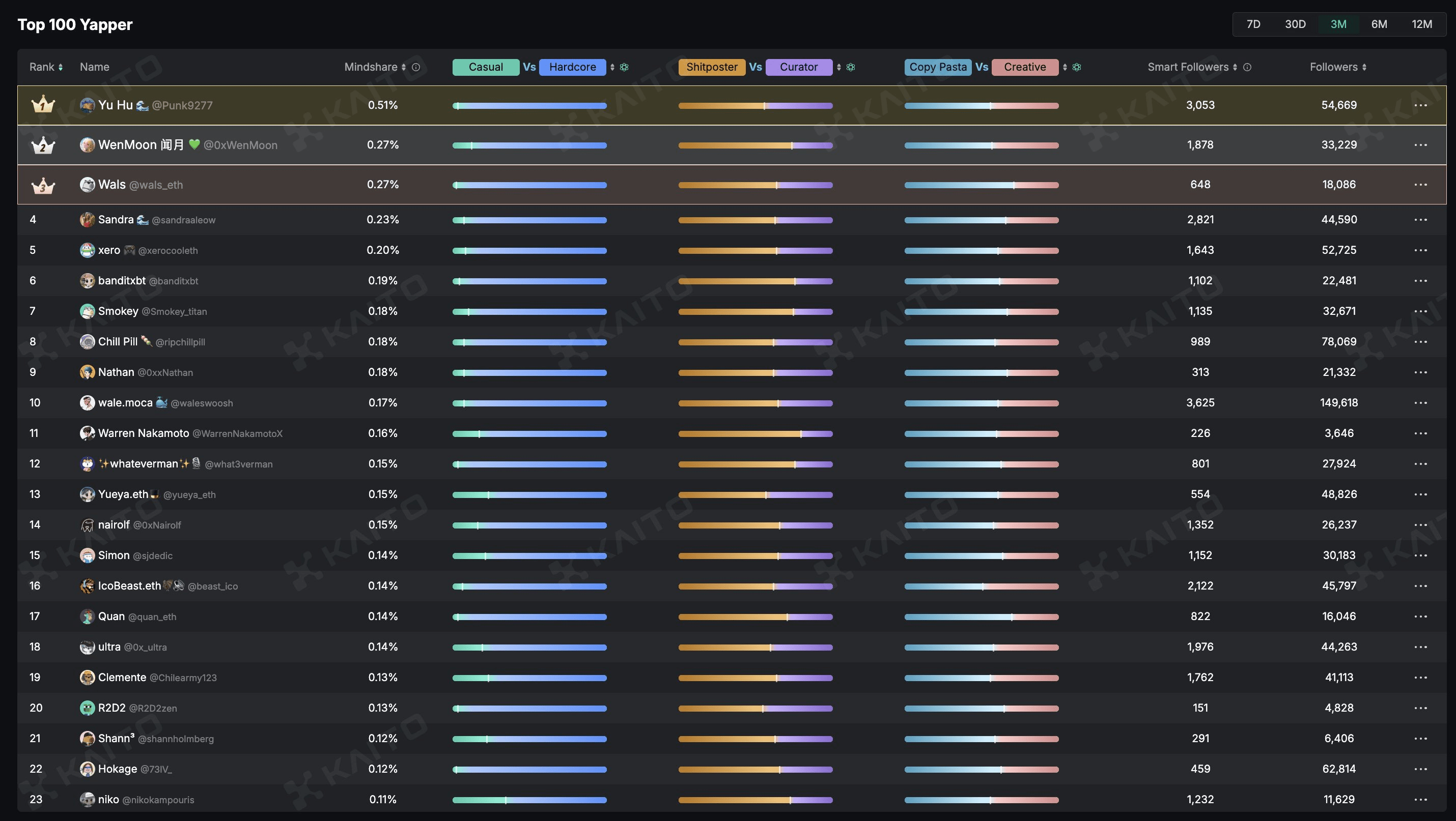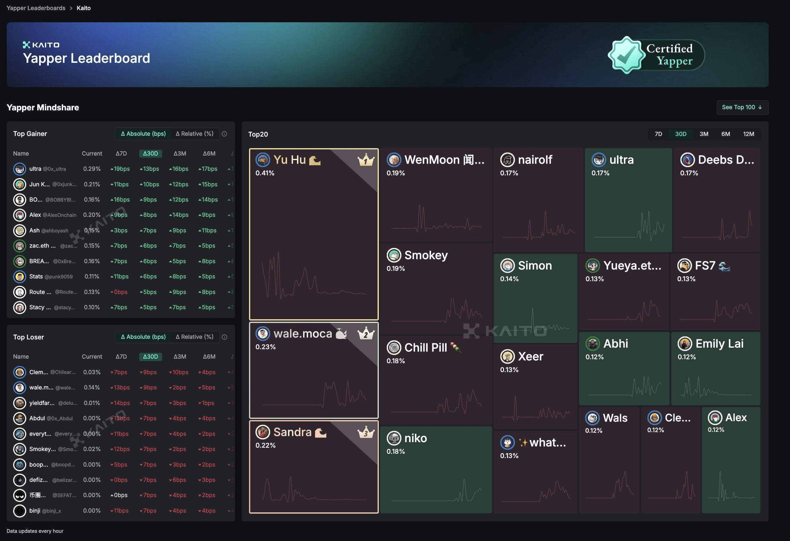 Kaito utilizza l'algoritmo di X + dati onchain per costruire la sua classifica.