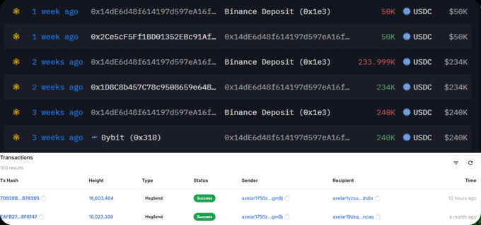 Mentre Ravindra nega pubblicamente tutte le accuse su X, proclamando la sua innocenza, la blockchain non mente. Le ricevute del wallet lo collegano direttamente. Un solo wallet, rintracciato a “Fonte 1,” ha ricevuto oltre $24.5 milioni su BSC! Un wallet Axelar con $310K in 4AXL? Scomparso, rintracciato a un indirizzo di deposito Binance – un classico movimento Ponzi di rotazione del capitale, utilizzando i fondi di nuovi investitori per pagare quelli più vecchi.