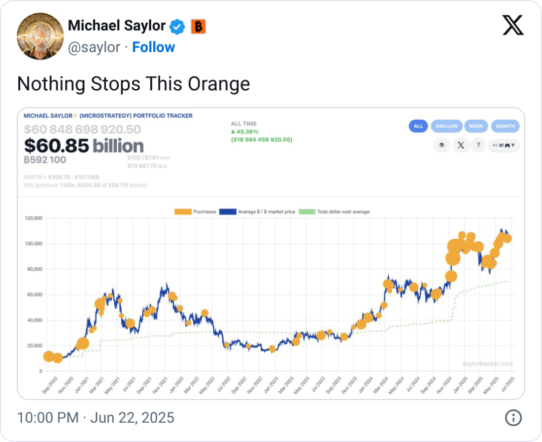 I suoi precedenti post criptici simili su X sono stati il precursore per Strategy di acquistare Bitcoin. La società ha le maggiori partecipazioni in Bitcoin di tutte le società pubbliche con 592.100 BTC, del valore di circa 59,7 miliardi di dollari, con Bitcoin scambiato poco sotto i 101.000 dollari.