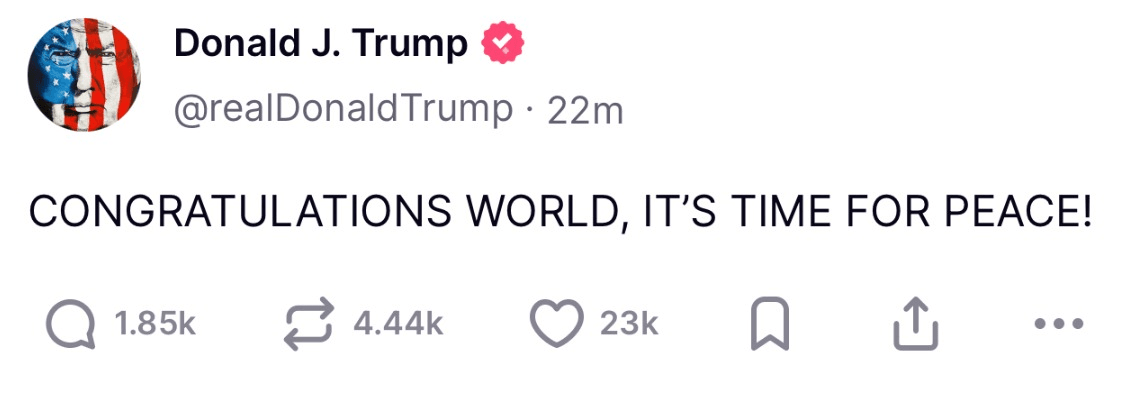 🔥🔥🔥 TRUMP: ‘CONGRATULAZIONI MONDO, È TEMPO DI PACE:
