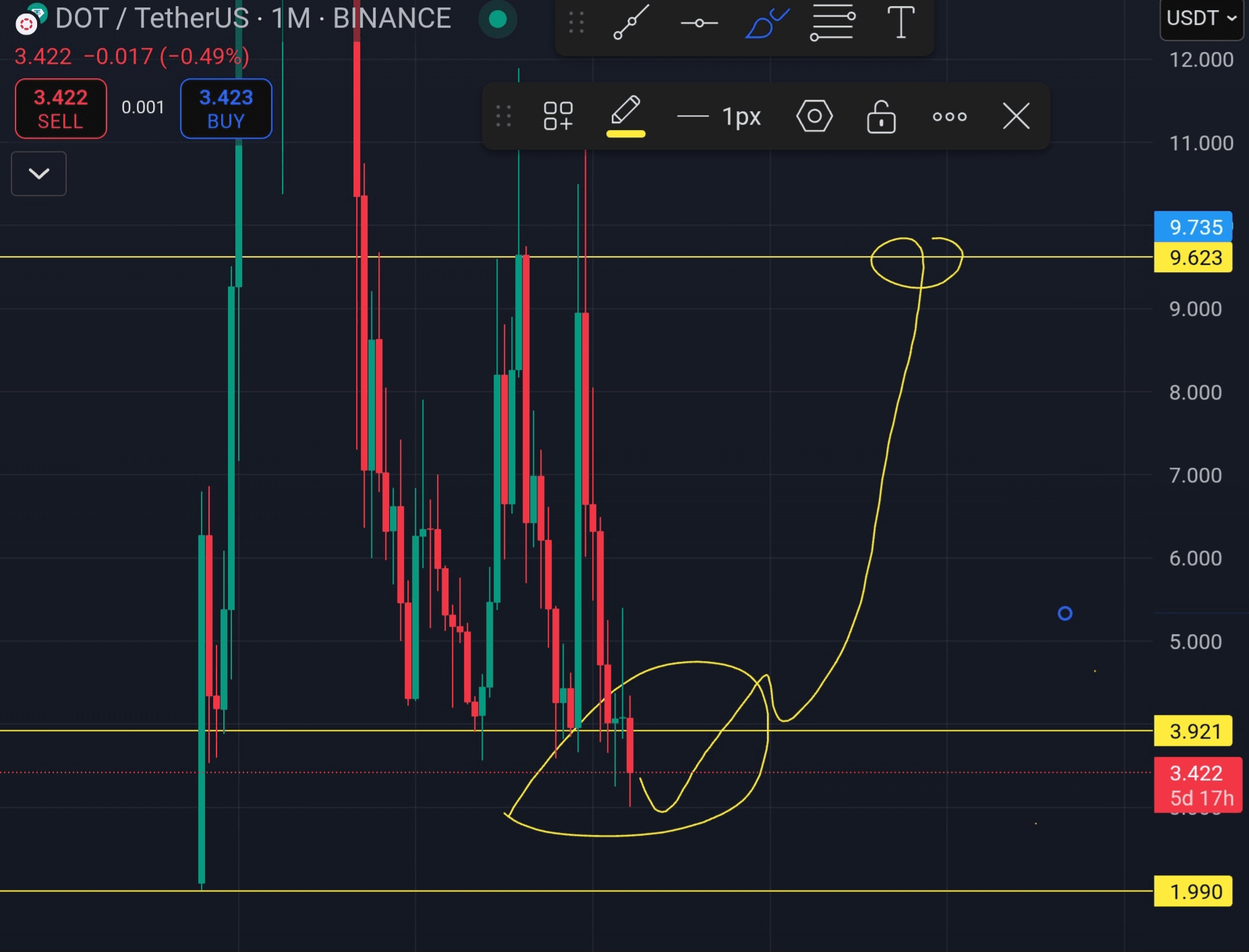 2. Rispetta la Tendenza: La tendenza rialzista di Dot Coin suggerisce che i ribassi possano essere opportunità d'acquisto, ma conferma sempre con un'analisi tecnica.