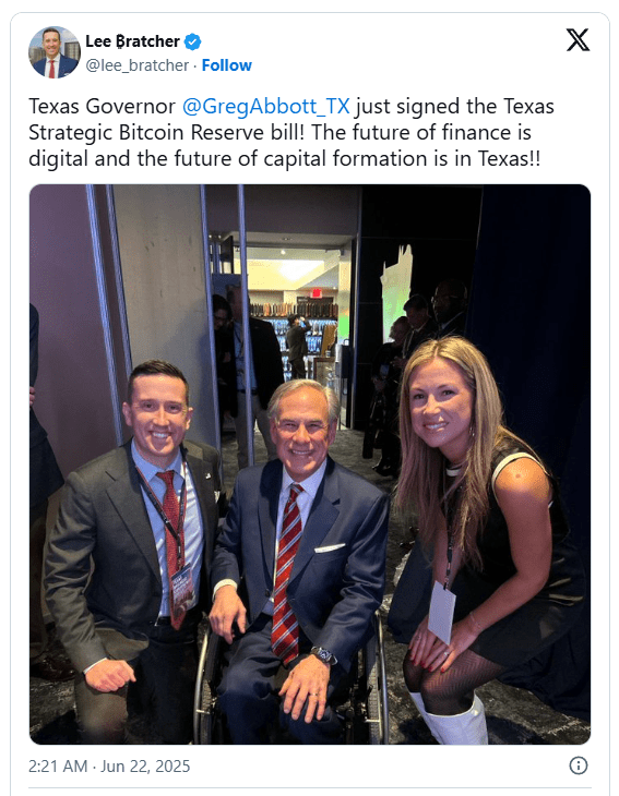 “Le basi che abbiamo gettato negli ultimi anni hanno contribuito a spianare la strada per questa svolta,” ha detto Bratcher. “Il nostro successo si è radicato negli anni di costruzione di fiducia con i legislatori, demistificare Bitcoin e collegarlo a valori fondamentali come il conservatorismo fiscale, la sovranità e l'innovazione energetica.”