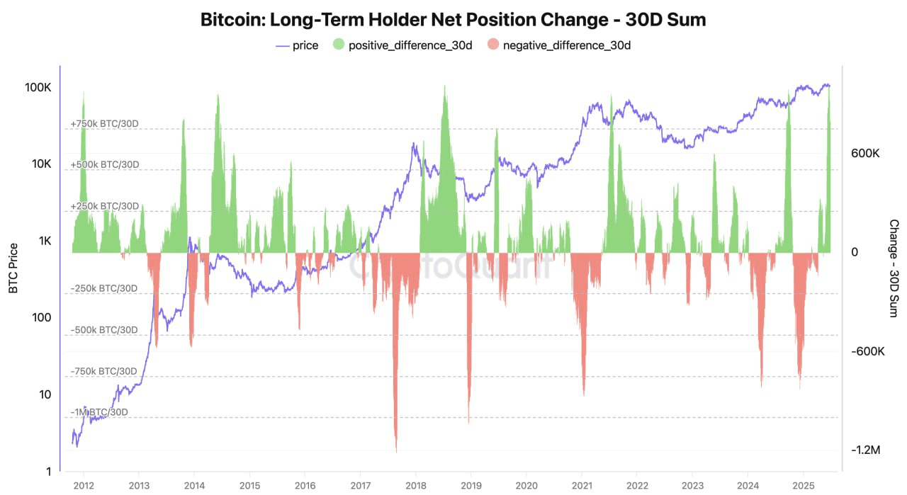 I detentori a lungo termine hanno aumentato le loro partecipazioni di 800.000 BTC in un mese, un nuovo massimo storico;