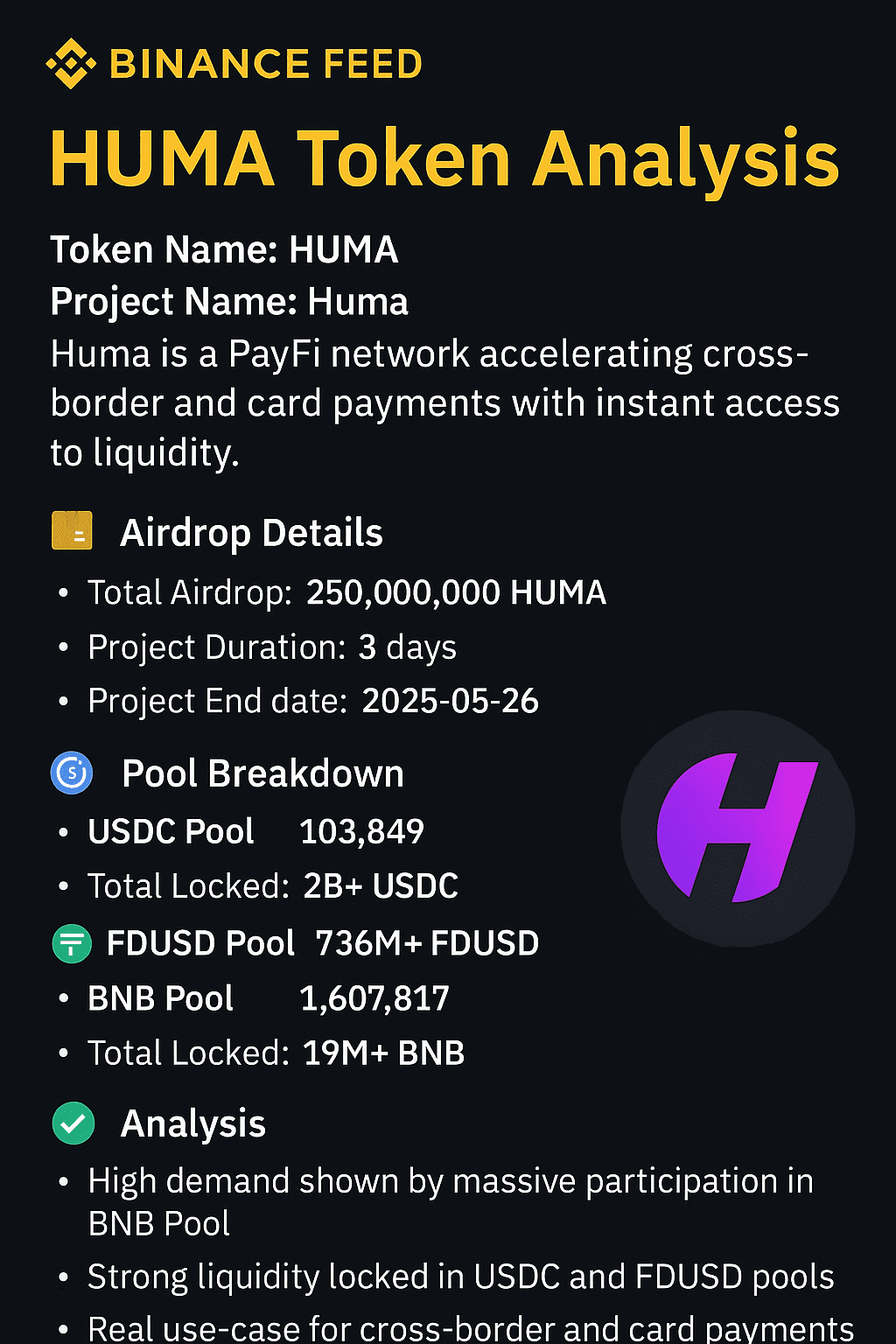 🔗 #HUMA #BinanceLaunchpool #Airdrop #CryptoNews #BinanceFeed