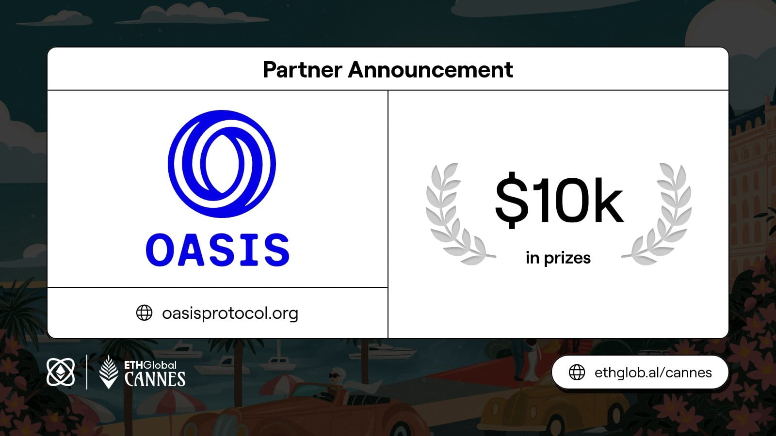 ☑️ 4 Luglio ~ 6 Luglio: ETHGlobal Cannes, Oasis offre un premio di 10.000 dollari!
