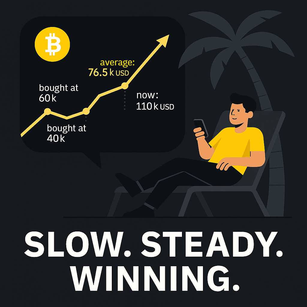 Dimentica di inseguire ricchezze straordinarie. La vera ricchezza - sia nel crypto che nei mercati tradizionali - si costruisce in modo diverso: attraverso la coerenza, la pazienza e la convinzione a lungo termine. La strategia di HODLing e di acquisto regolare (nota anche come Dollar-Cost Averaging o DCA) potrebbe non essere appariscente, ma funziona. Bitcoin, Ethereum e altri progetti solidi ricompensano coloro che rimangono sulla buona strada - non coloro che entrano in panico o cercano di prevedere il fondo.
