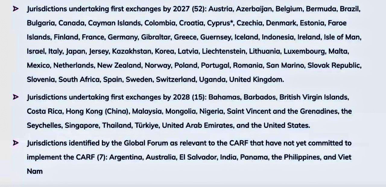 L'OCSE (l'organizzazione globale dietro gli standard fiscali internazionali) ha introdotto una nuova regola chiamata CARF — Crypto-Asset Reporting Framework. Questo framework è progettato per portare le criptovalute sotto gli stessi sistemi di trasparenza fiscale utilizzati dalla finanza tradizionale.