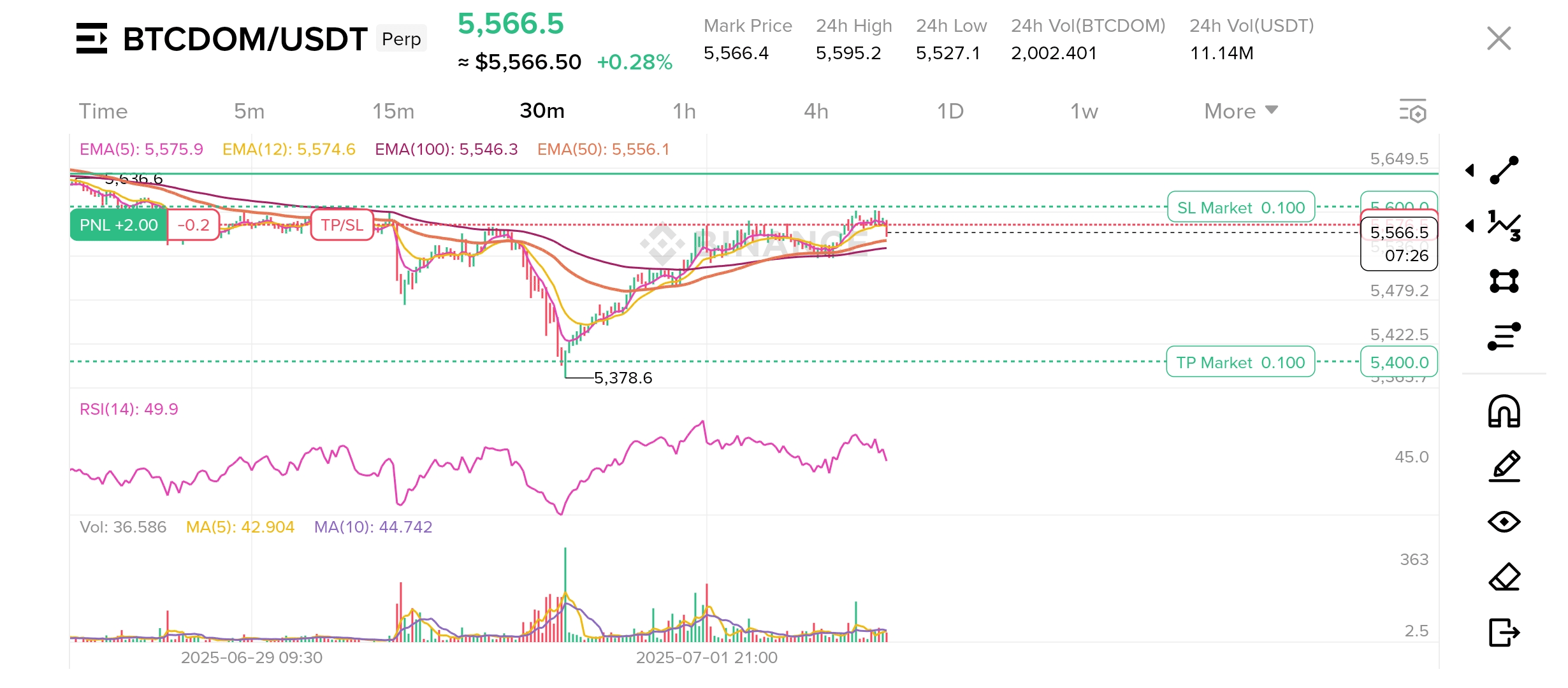 Se il neckline non riesce a tenere il supporto di 5.378, la momentum al ribasso potrebbe aumentare e potrebbe scendere fino a 5.000. Se il volume aumenta e chiude sotto le EMA nel grafico giornaliero, la tendenza ribassista potrebbe continuare.