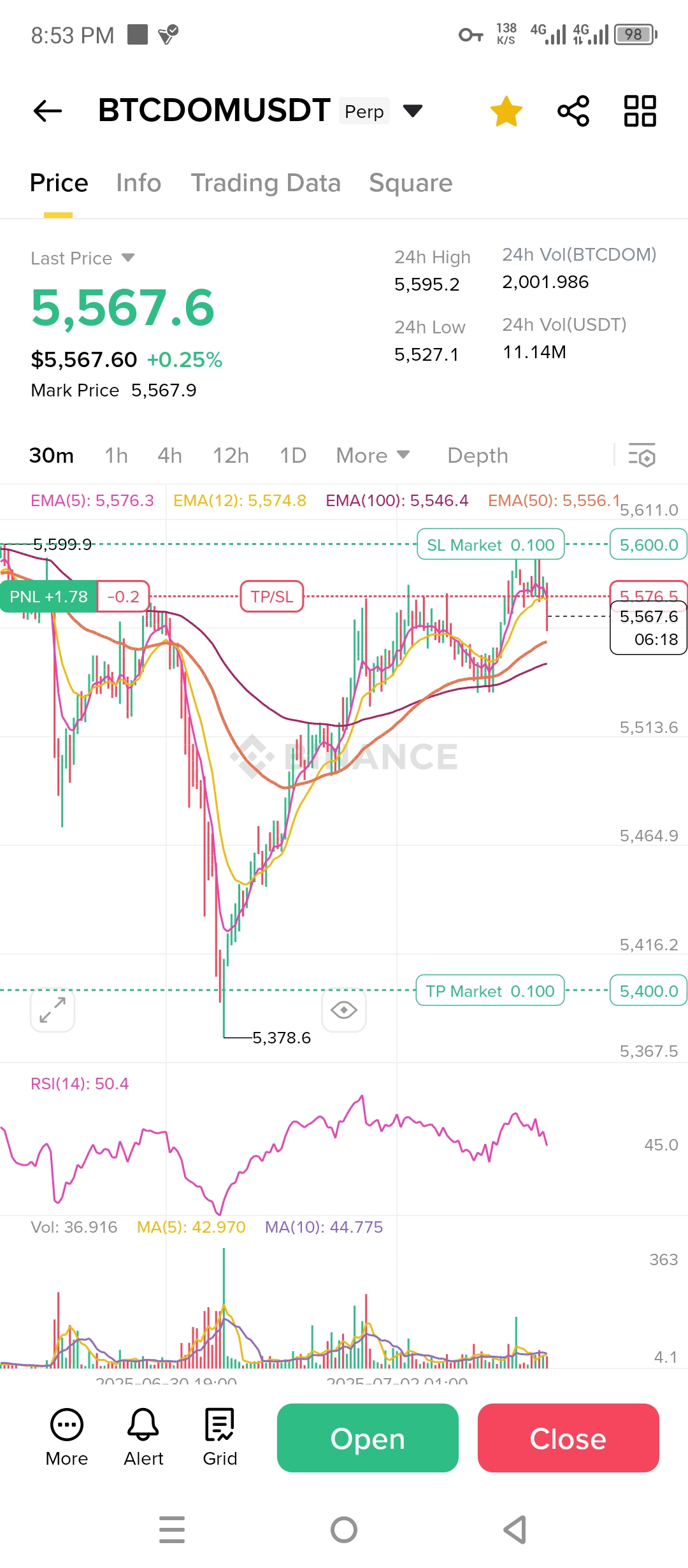 Se il prezzo chiude sotto le EMA (5, 10, 20, 100), la momentum ribassista diventerà più evidente.