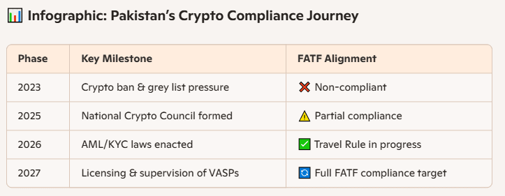 Il Pakistan sta entrando nell'arena globale delle criptovalute—e questa volta è serio. Con un nuovo quadro normativo allineato agli standard AML/CFT del FATF, il paese si sta preparando a legalizzare le criptovalute e a posizionarsi come un attore responsabile nel mondo della finanza digitale.