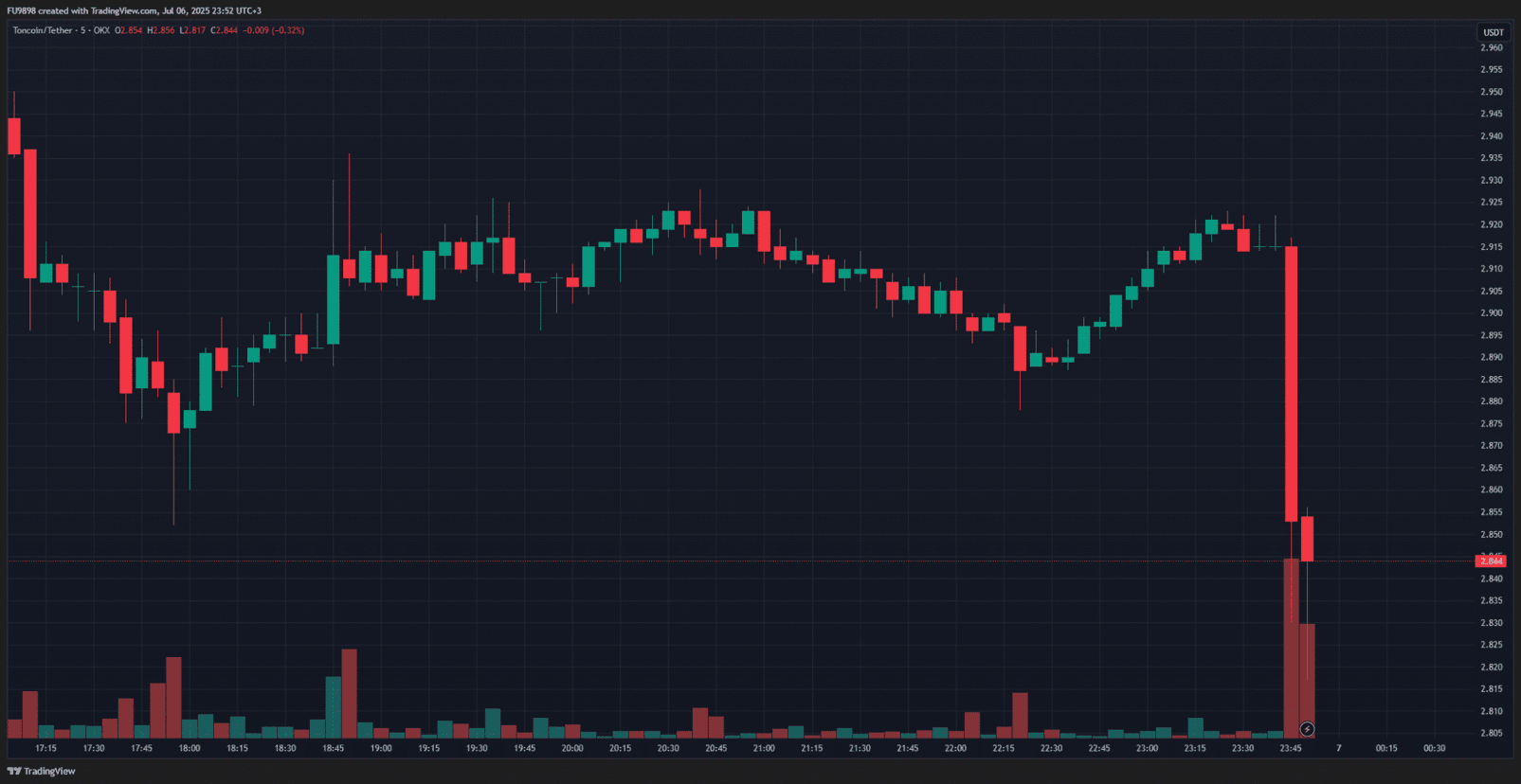 A seguito dello sviluppo, c'è stata un'improvvisa caduta del prezzo del TON: