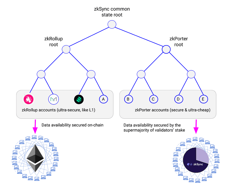 Inoltre, nella visione di Matter Labs, gli account su zkPorter possono interagire perfettamente con account o contratti su ZK Rollup (zkSync Era). Dal punto di vista dell'utente, l'unica differenza evidente potrebbe essere che il costo di un account zkPorter sarà molto più economico.
