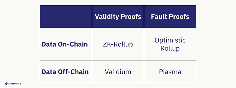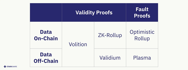 In parole povere, la soluzione off-chain è non utilizzare più Ethereum come livello DA e cercare invece modi più economici per ottenere la disponibilità dei dati. In base alle differenze di decentralizzazione e sicurezza, le soluzioni off-chain possono essere suddivise in quattro tipi: Validium, Data Availability Committee (DAC), Volition e soluzioni DA generali.