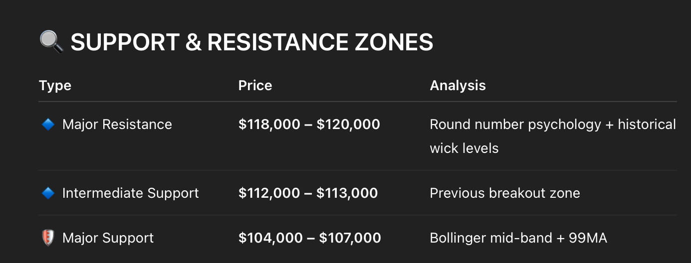 BTC è recentemente uscito da un range di consolidamento (~$105K–$112K).