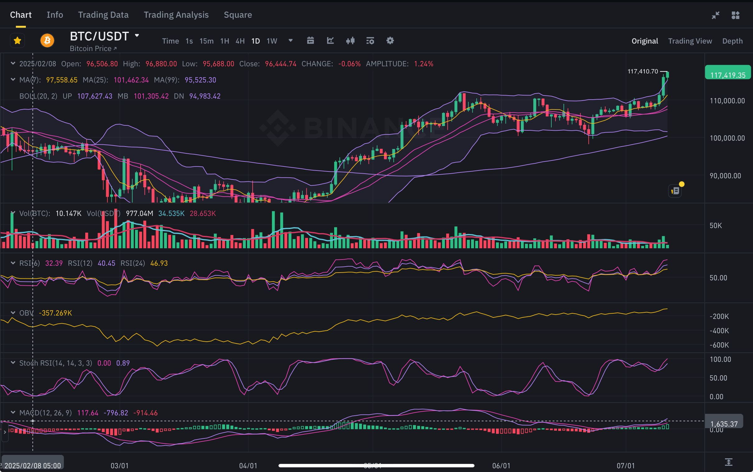 Nuovi massimi locali vengono stampati a $117,410.70.