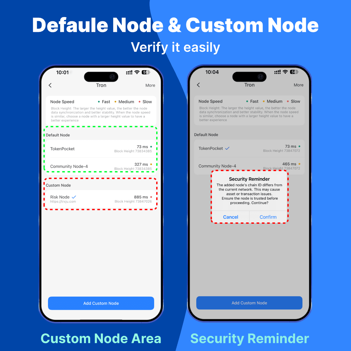 Riconosci i nodi non ufficiali a colpo d'occhio. Non ignorare mai alcun avviso di sicurezza dal tuo portafoglio!