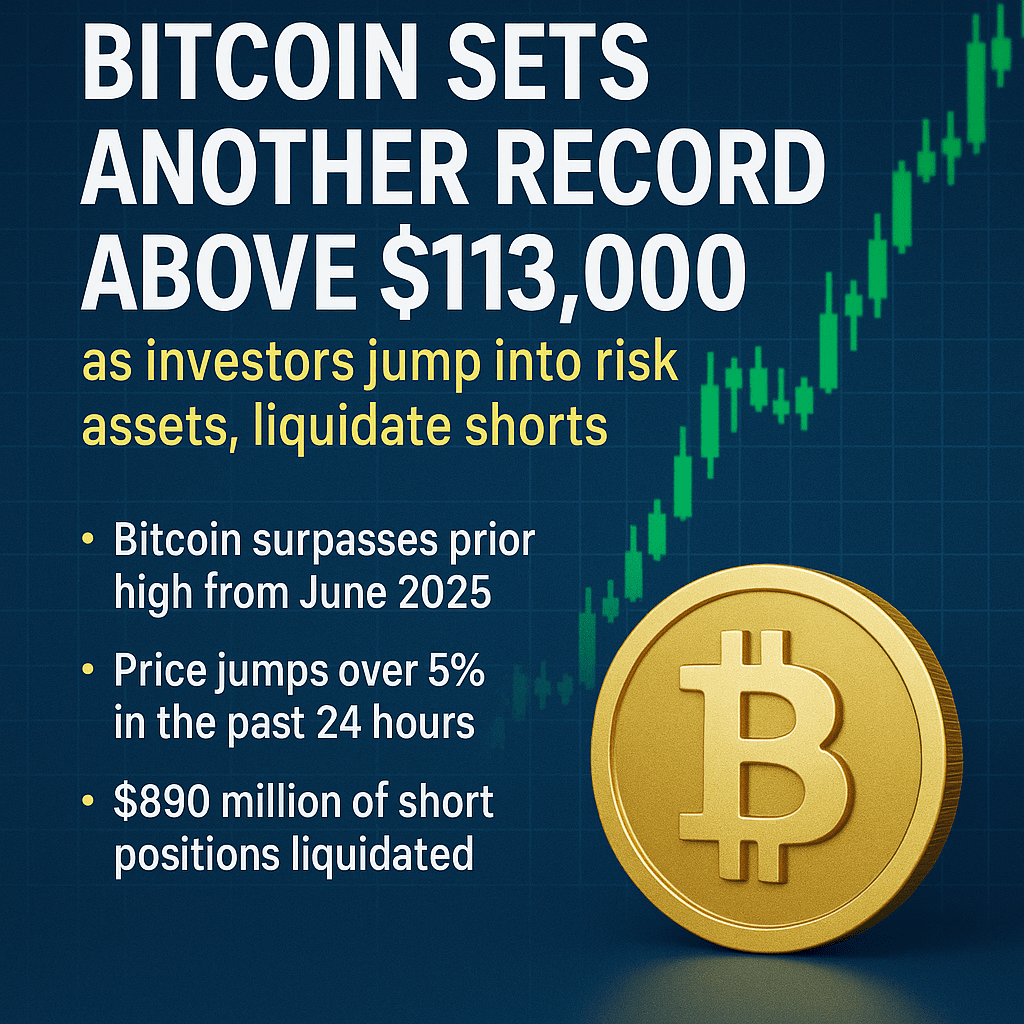 #ETHBreaks3k Bitcoin (BTC) ha superato un'altra importante barriera attraversando $113,000, segnando un altro massimo storico nel 2025. L'aumento ha innescato la liquidazione di oltre $890 milioni in posizioni corte nelle ultime 24 ore, mentre gli investitori continuano a spostarsi pesantemente verso asset a rischio.#TrendTradingStrategy