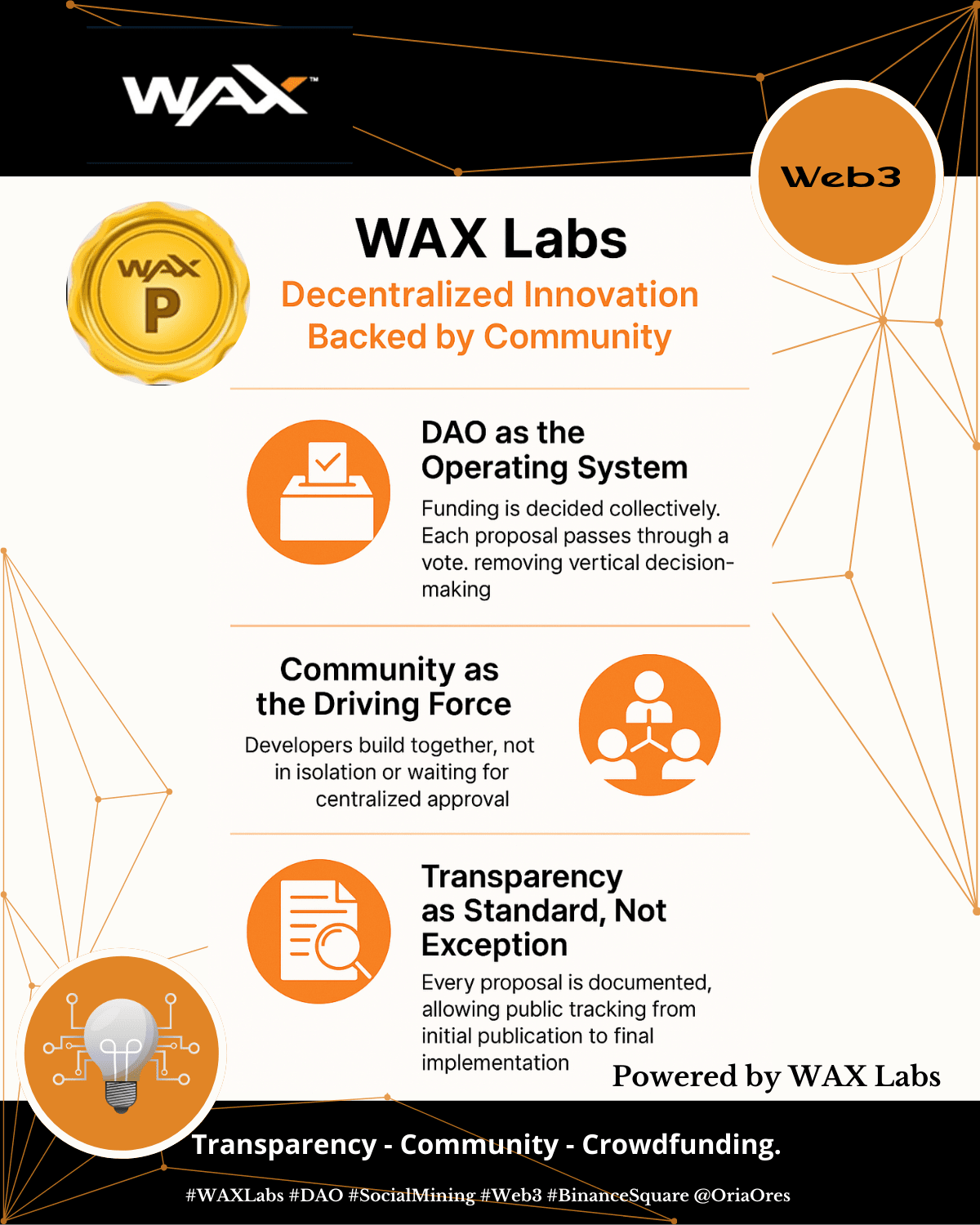 @WAX Labs sta trasformando il modo in cui #Web3 viene costruito attraverso un sistema di finanziamento gestito da un #DAO , consente agli sviluppatori di presentare proposte, ricevere supporto e costruire strumenti utili direttamente sulla blockchain WAX; non si tratta di concetti astratti; è una metodologia funzionale con regole chiare, partecipazione attiva e risultati visibili.
