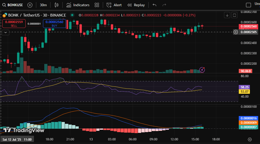 Suggerimento Veloce: Per verificare il prossimo incremento, osserva un superamento e una chiusura a 1H sopra 0.00002650 con volume.