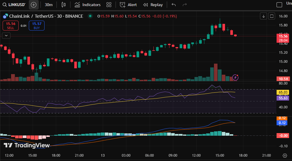 LINK ha mostrato una forte spinta degli acquirenti seguendo perfettamente la struttura rialzista, passando da 14.70 a 15.95. Senza ritratti significativi, i rialzisti stanno superando la resistenza e creando minimi più alti.