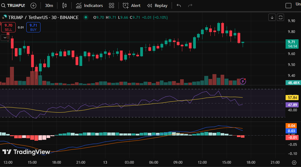 Dopo il recente aumento, #TRUMP si sta stabilizzando e attualmente scambia a 9.82. Il grafico 4H indica segnali di recupero, e se il momentum aumenta, una nuova rottura sembra imminente.