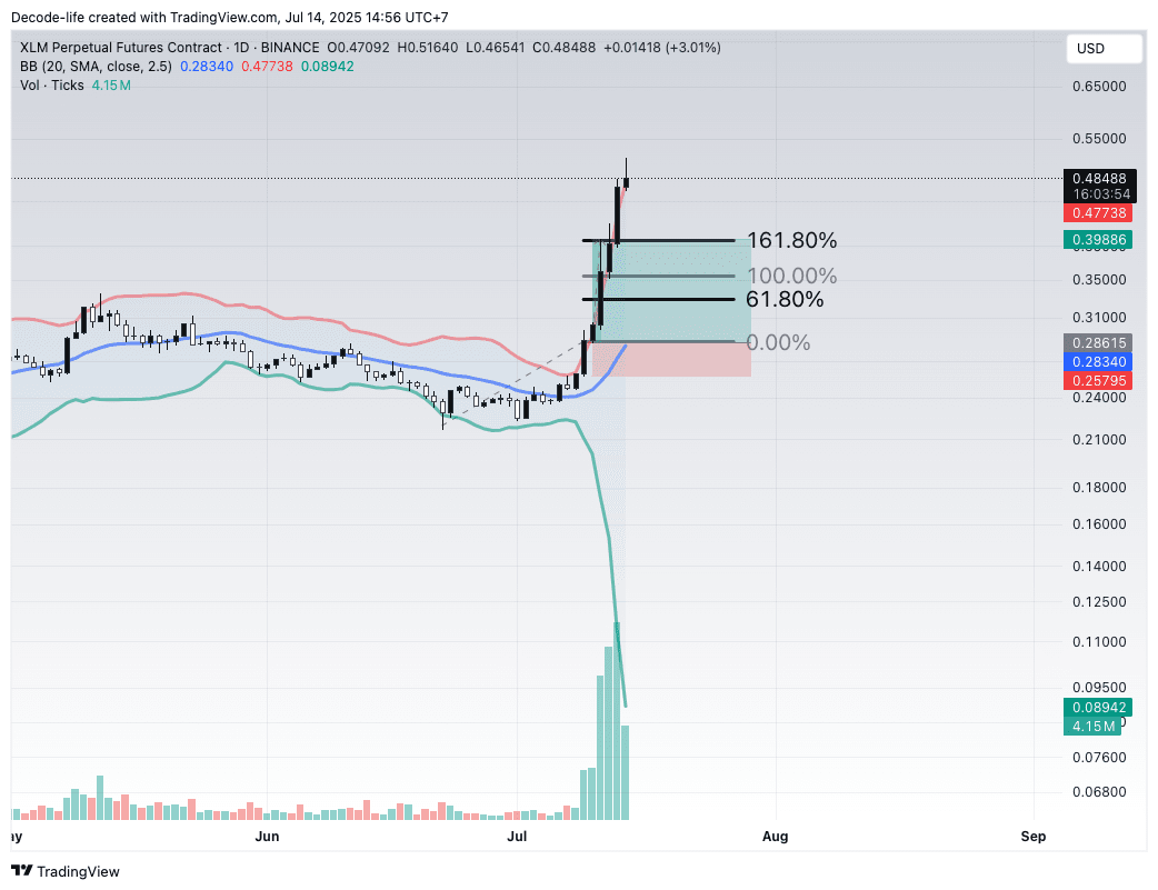 TP2: Punta all'estensione di Fibonacci del 161.8% ($0.39891) per la posizione rimanente.