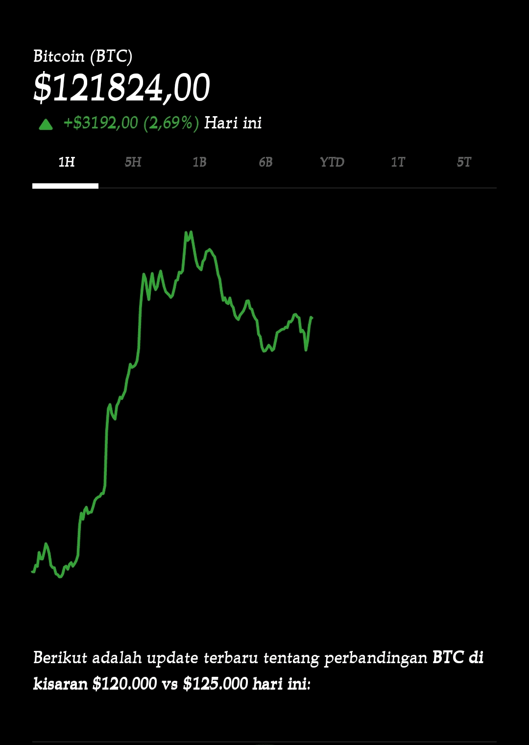 Ecco l'aggiornamento più recente sul confronto BTC nella fascia di $120.000 vs $125.000 oggi:
