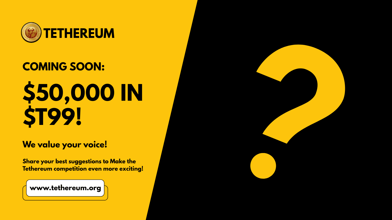 Ciò che rende questa campagna ancora più unica è che il team di Tethereum invita suggerimenti dalla comunità per aiutare a definire la struttura della competizione e renderla più entusiasmante. Che si tratti di distribuzione dei premi, funzionalità della classifica o sfide di partecipazione, la tua idea potrebbe essere inclusa!